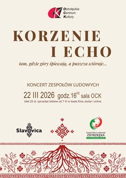 Bilety KORZENIE I ECHO: TAM GDZIE GÓRY ŚPIEWAJĄ, A PUSZCZA WTÓRUJE - koncert zespołów ludowych - Ostrołęka, 22 marca 16:00